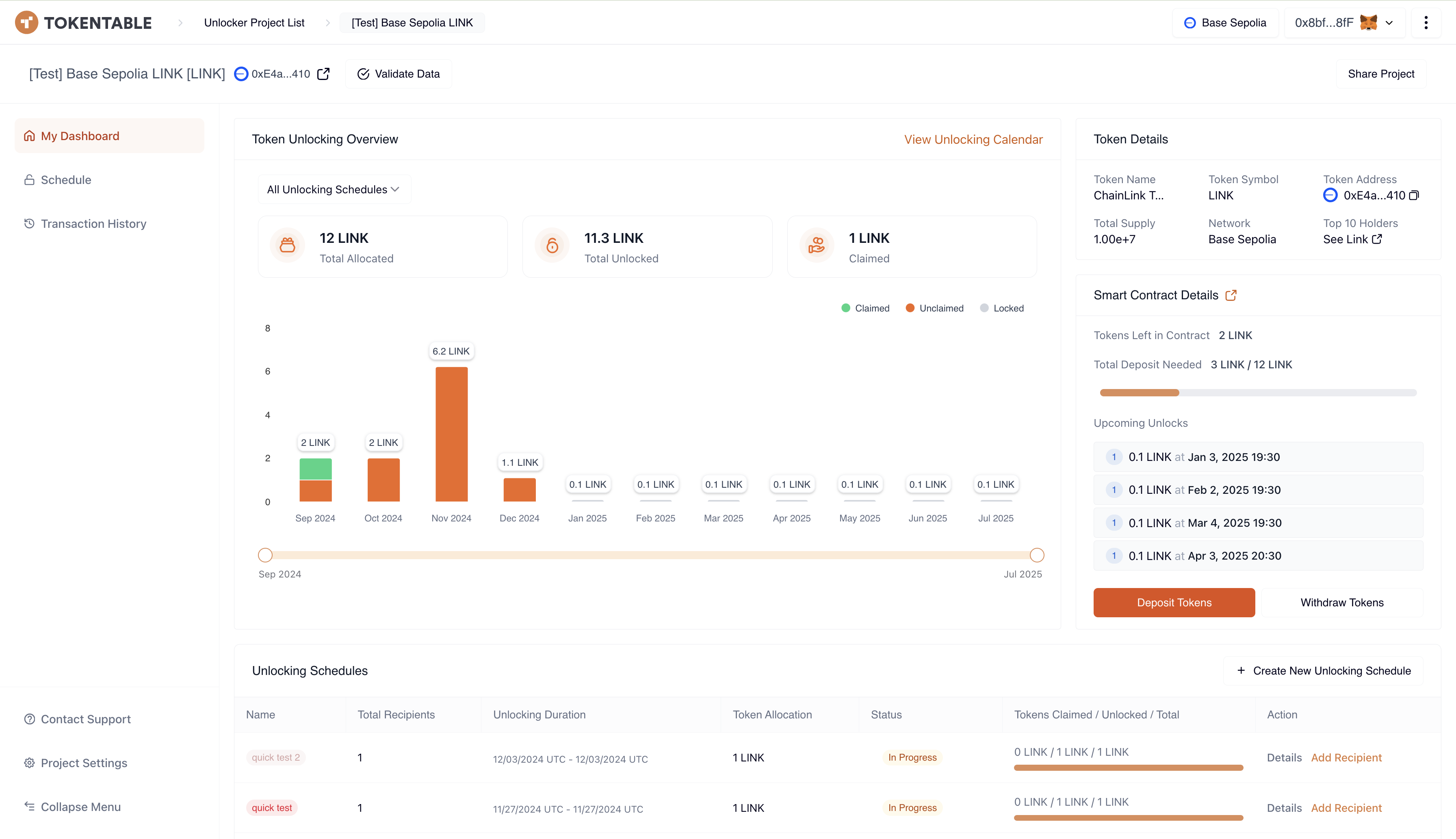 TokenTable Unlocker is currently available on Ethereum, Solana, Starknet, Base, Berachain, BNB, Cyber, Scroll, zkSync Era, and Zetachain. Please reach out to us if you would like customized support for another network.